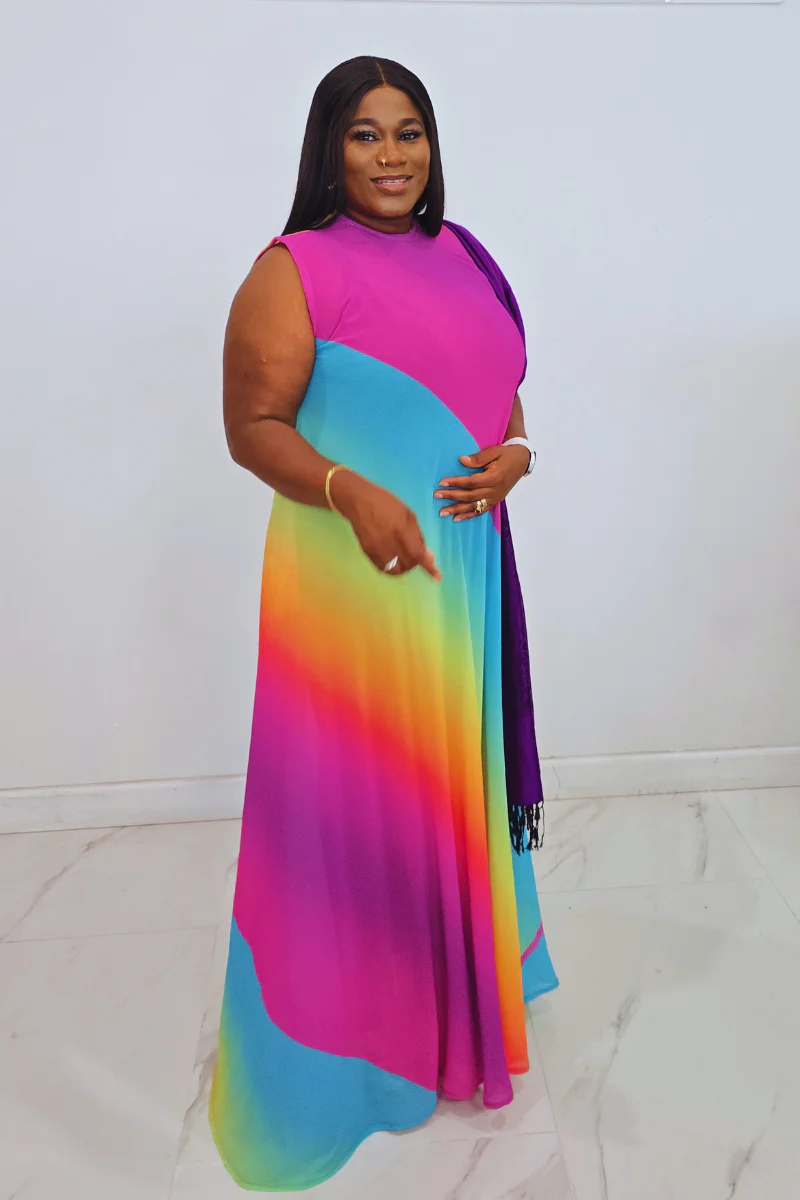Expertly crafted from lightweight chiffon, the Bally Multi Dress boasts a vibrant rainbow hue. This stylish dress is the perfect addition to your wardrobe, offering a flowy and comfortable fit. Made with high-quality material, it is sure to elevate any outfit with its eye-catching design